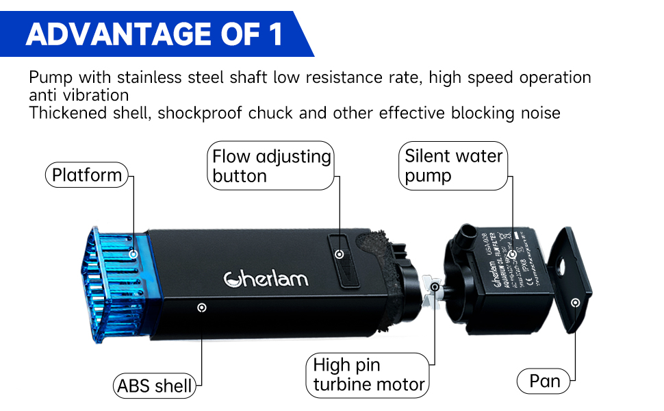 The floating table of the protein skimmer adopts a lifting design, which can automatically lift up to 1.18 inches, so there is no need to worry about the situation that the aquarium surface protein skimmer does not work due to the drop of water vapor evaporation and water level. The stainless steel shaft of the pump has low resistance, high-speed operation, anti-vibration thickened shell, and anti-vibration suction cups, which effectively block various noises.