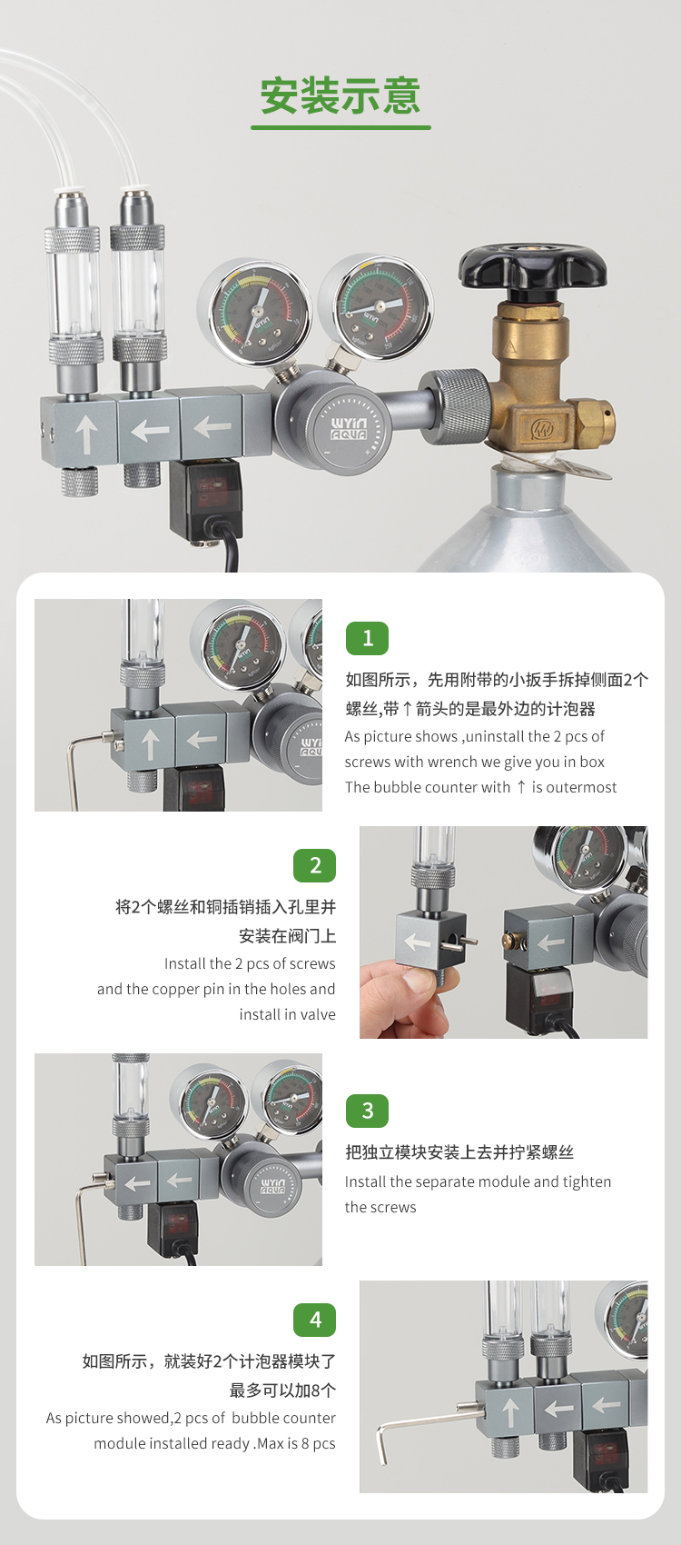 - Additional Wyin Aqua Expandable Manifold Block can be added to make same kit for multiple output
