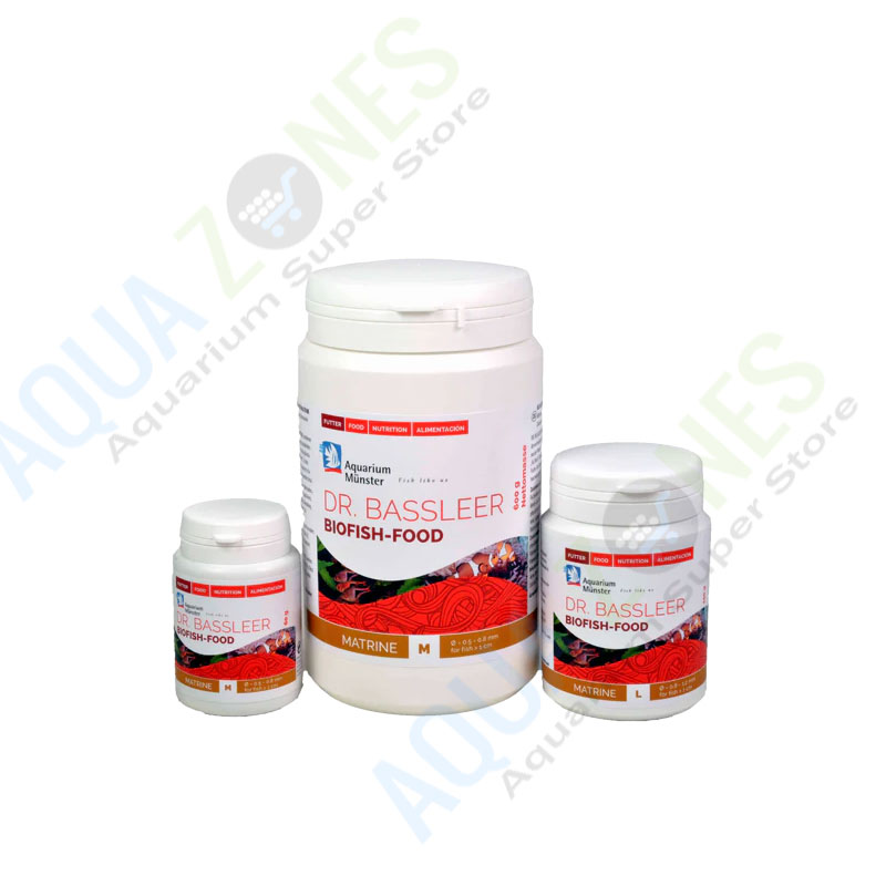 Dr. Bassleer Biofish Food Matrine granulates in smaller pellet size M sink slowly, thus providing nutrients to all three water zones. This gives surface feeders, fish in the middle zone as well as bottom feeders alike a fresh and balanced diet.